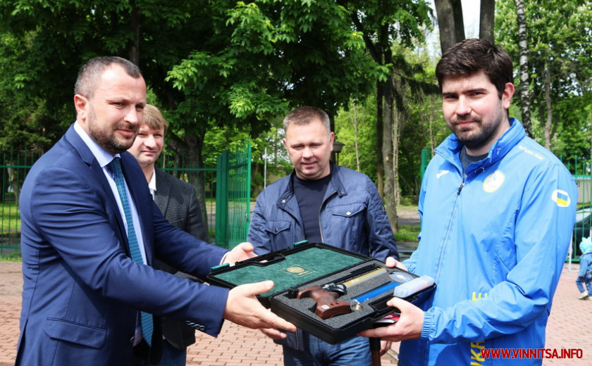 Також було вручено нагороду вінницькому спортсмену, бронзовому призеру Паралімпійських ігор, неодноразовому переможцю Кубків Світу Олексію Денисюку. Вчора він повернувся з Міжнародного турніру зі стрільби кульової серед спортсменів з ураженням опорно-рухового апарату, на якому Олексій здобув дві золотих медалі, одну срібну та одну бронзову медаль. Сьогодні йому вручили пневматичний пістолет «STEYREVO-10», який спортсмен використовуватиме з метою якісної підготовки та участі у міжнародних змаганнях та Паралімпійських іграх в Токіо - 2020.