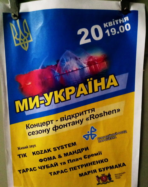 20 квітня у Вінниці відбудеться традиційне відкриття світломузичного фонтану «Рошен». Концертна програма цього року буде під гаслом «Ми – Україна», яка розпочнеться о 19:00 годині.