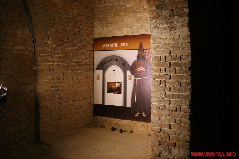 Підземелля монастиря ділиться на дві частини: крипти під храмом і монастирські підвали. Крипти під храмом призначалися для поховань монахів і визначних жителів міста. Натомість у монастирських підвалах зберігалися вирощені в монастирському саду плоди, виготовлений на пасіках мед та пиво, яке варилося для виготовлення пивного супу, який роздавався убогим і хворим, особливо під час епідемій.