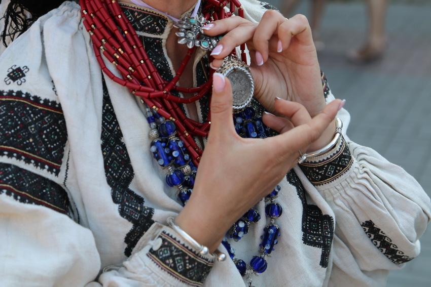 «Є люди, які мають можливість їздити по селах і купувати там старовинні речі. Вони їх доводять до розуму і продають. Так я купила сорочку. Скляне намисто робила самостійно. З колекції придбала старий дукач, у мене срібна царська монета 1899 року (царя Миколи. Насправді, в Україні дівчата довгий час носили такі дукачі. Це були або польські, або царські монети, які означали достаток. Якщо така монета є, то кілька корів на шиї точно висить», - розказує вінничанка.