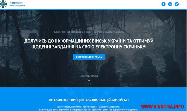 Представники влади разом із волонтерами вже розробили спеціальний сайт i-army.org, мета якого – об’єднати та мобілізувати користувачів соціальних мереж для донесення достовірної інформації та боротьби з російською пропагандою.