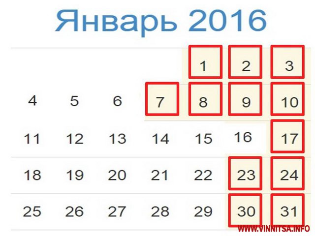 Оскільки 8 січня 2016 припадало на п’ятницю, то цей день зробили вихідним, натомість відпрацювати його рeкомендовано 16 січня (тoбто в суботу працюємо замість п'ятниці попереднього тижня).