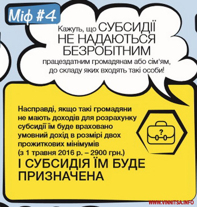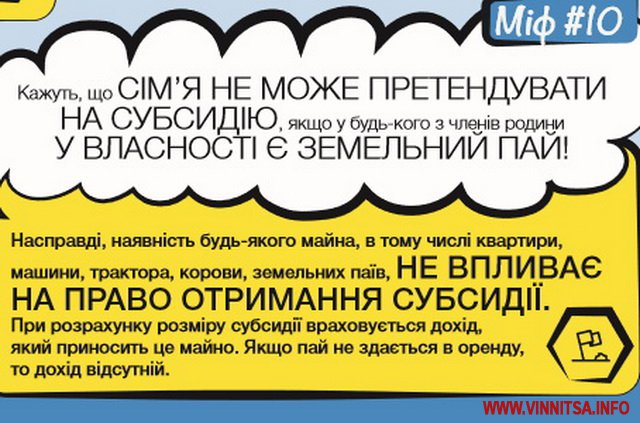 «Є єдине обмеження в праві на субсидію у зв’язку з майновим станом - одноразова купівля товарів чи замовлення послуг на суму понад 50 тис. гривень. Але бувають випадки, що людина продала квартиру і купила нову. Наприклад жінка з двома дітьми, одна дитина має інвалідність, продала міську квартиру і купила на околиці будинок, щоб дитина-інвалід могла бути на подвір’ї. Жінці спочатку відмовили. Але вона має право на субсидію. Їй потрібно було звернутись на комісії при місцевому органі влади і комісійно може бути прийняте рішення призначити їй субсидію. У даному випадку жінці субсидію призначили.