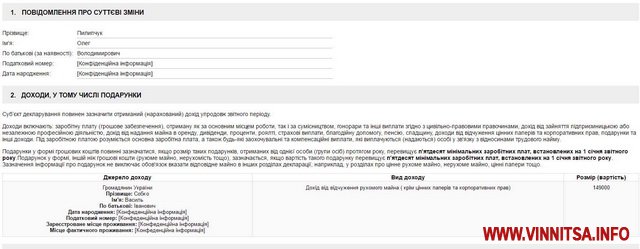 Разом з тим, в повідомленні про суттєві зміни майнового стану, голова суду зазначив, що отримав дохід від відчуження рухомого майна від громадянина Собко І. В. на суму 149 тис. гривень.