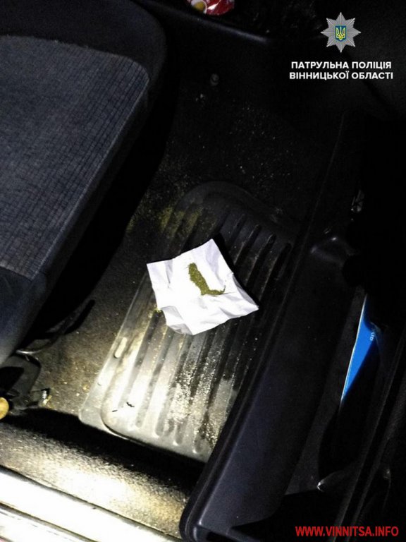 При поверхневій перевірці у 24-річного хлопця в шкарпетках виявили 2 згортки з речовиною зеленого кольору рослинного походження, зовні схожою на наркотичну. Крім того, така ж речовина була розсипана в салоні автомобіля, в якому хлопці розважались.