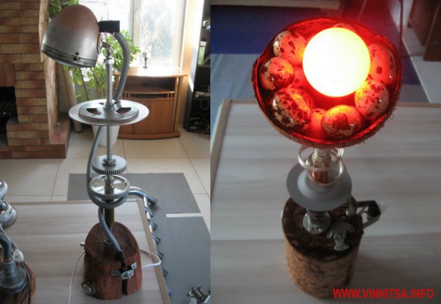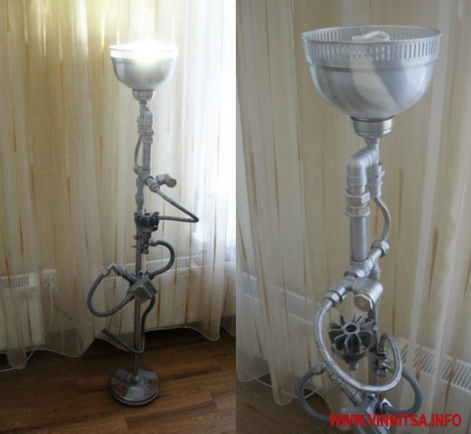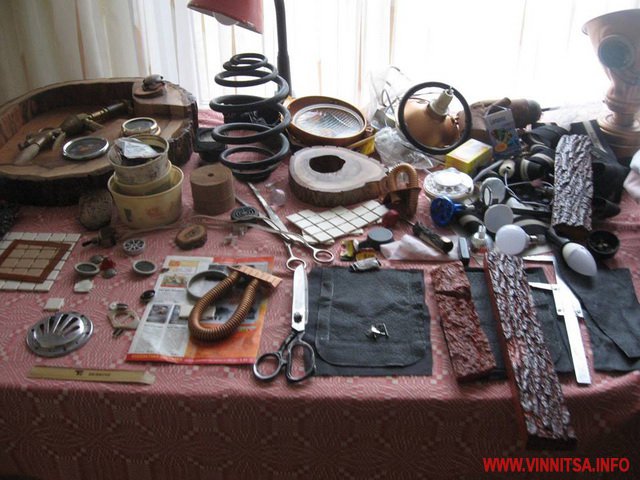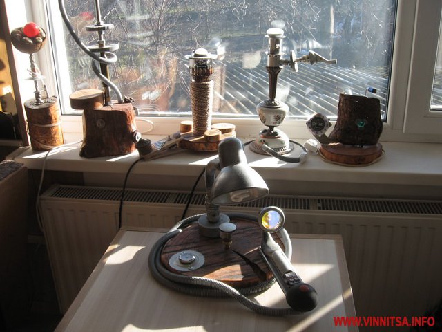 Вінничанин Геннадій Савлук кілька років створює незвичні предмети інтер’єру. Деталями слугують старі труби, шланги, автозапчастини, дерево, будматеріали та навіть частини снарядів, - здебільшого те, що люди просто викидають на смітник або ховають далеко у гаражі.