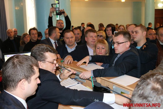 У відповідь на таку заяву «опоблоківець» Юрій Яремчук запропонував зробити засідання закритим. Анатолій Олійник сказав, що Вінницька облрада є однією з найпрозоріших в країні, тому такі дії будуть зайвими. Проте все-таки поставив дане питання на голосування. Його підтримали лише 14 осіб.
