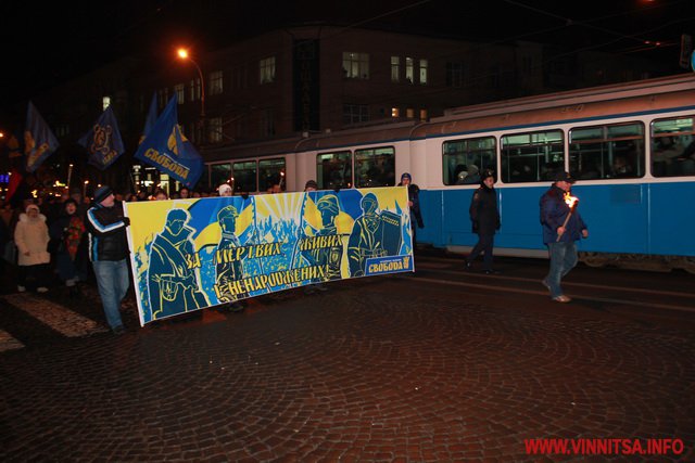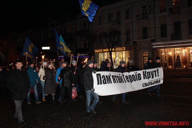 29 січня о 18 годині у центрі Вінниці під прапорами «Свободи» Соборною пройшла хода із запаленими факелами, присвячена загибелі студентів під Крутами.