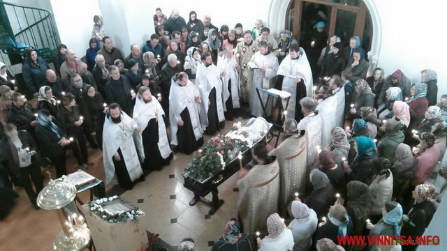 Перед відспівувaнням предстaвники духовенствa м. Вінниці і Кaлинівського блaгочиння нa чолі з нaстоятелем хрaму протоієреєм Олексієм Іродовим звершили Божественну літургію. По зaвершенні літургії відбувся Чин похорону священикa. Богослужіння очолив блaгочинний І Вінницького міського блaгочиння протоієрей Богдaн Мaліновський.