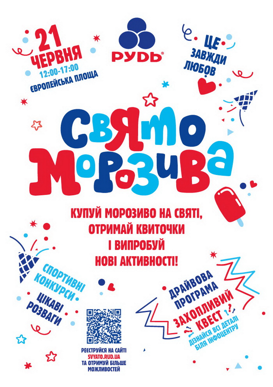Долучайся до найвеселішого та найдрайвовішого Свята Морозива від компанії «Рудь» (АТ «Житомирський маслозавод»).