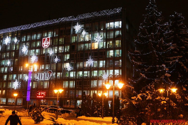 Зазначимо, що цьогоріч також оновили ілюмінацію на фасаді міської раді. Цифра «2019» теж стала золотою і тепер має червону шапку.