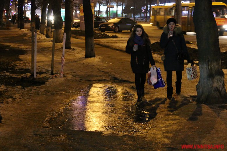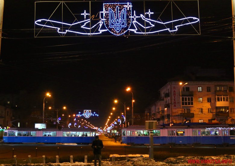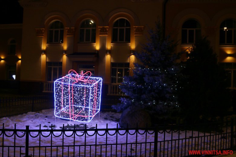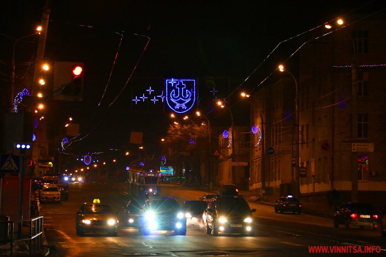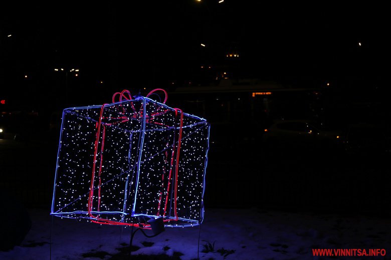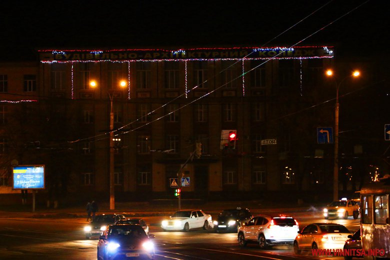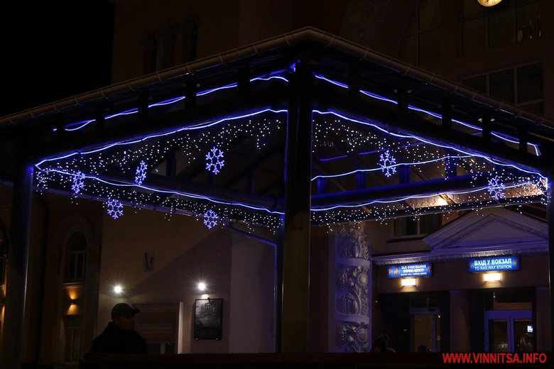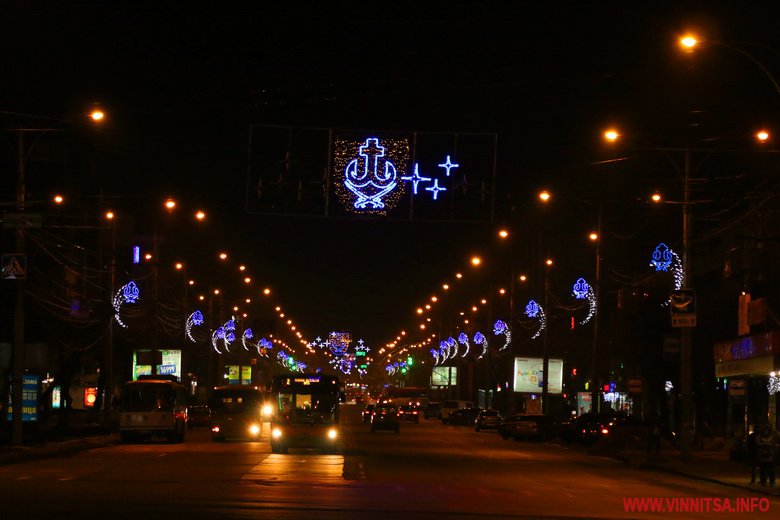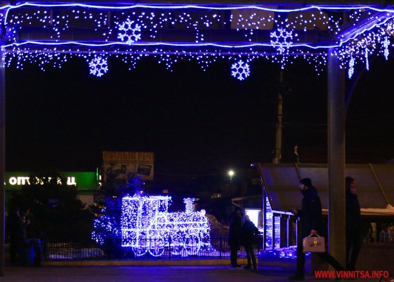 Новий рік у Вінницю прийшов без снігопаду, однак місто виглядає по-справжньому святково завдяки ілюмінації. Гірлянди прикрашають вітрини торговий центрів, дерева та будинки.