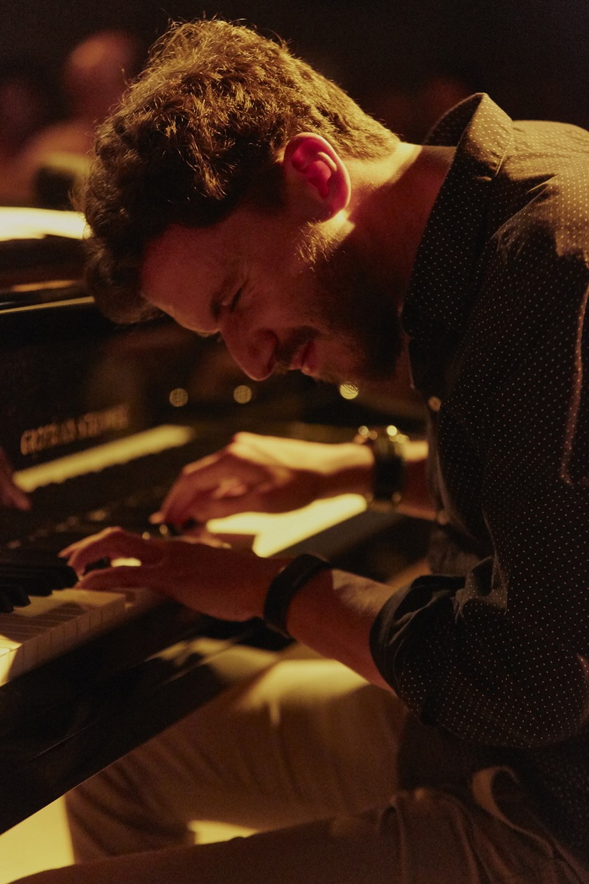 Що дійсно так і є: під час концерту він регулярно вдавався до характерних для джазу вокальних відступів, пританцьовував на сцені та «салютував» своїм колегам-музикантам, одеситам з Тріо Олексія Петухова.