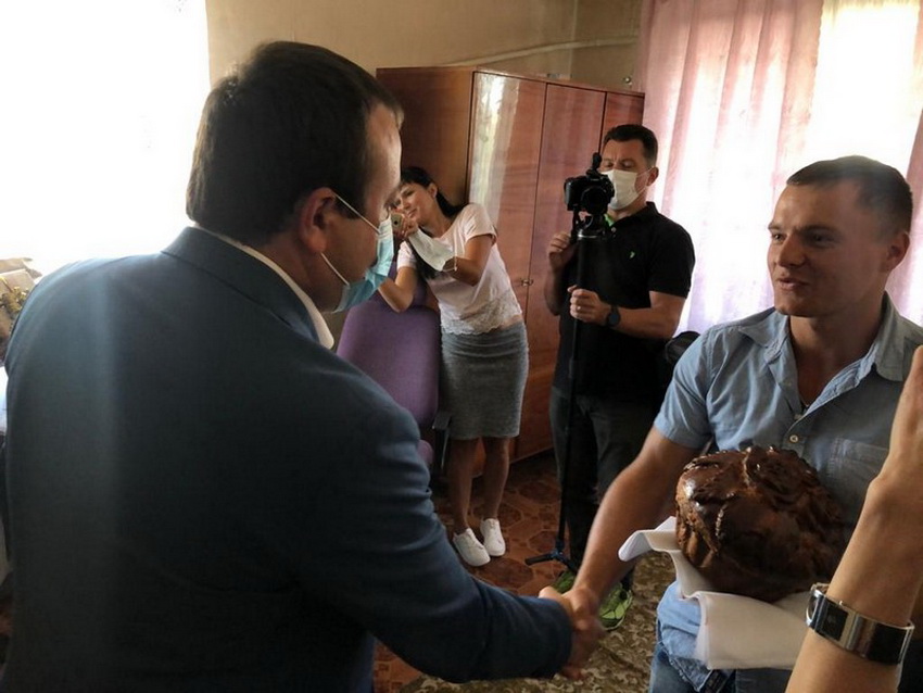 «Ми сьогодні до Вас із почесною місією – вручити ключі від квартири, яку придбала Вам наша держава», – зазначив голова ОДА Сергій Борзов, вітаючи молодого чоловіка.