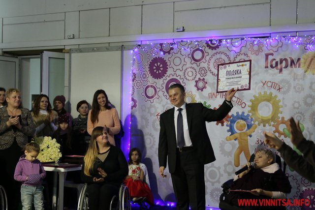 Голова ГО «Гармонія» Раїса Панасюк підготувала Подяки гостям свята які постійно підтримують громадську організацію та людей з інвалідністю та отримала слова подяки від керівників області, депутатів і громадських діячів.