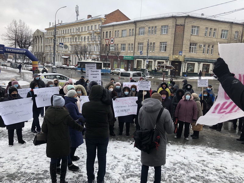 В цей час під стінами обласної ради стояли люди, які вийшли з плакатами проти високих тарифів. В переважній більшості – жінки пенсійного віку. Вони справедливо обурені зростанням цін. Коли почали розповідати деталі, то з’ясувалось, що тарифи у них високими були завжди. Люди оформляли субсидію, але минулого і позаминулого року їм відмовили в призначенні допомоги. Одна з жінок скаржилась, що їй відмовили, бо син за кордоном. Інша жінка розповіла, що отримала в спадок будинок в Шаргородському районі, вартістю 27 тисяч гривень, і субсидію їй теж не призначили. Цього року люди вже не звертались по допомогу.