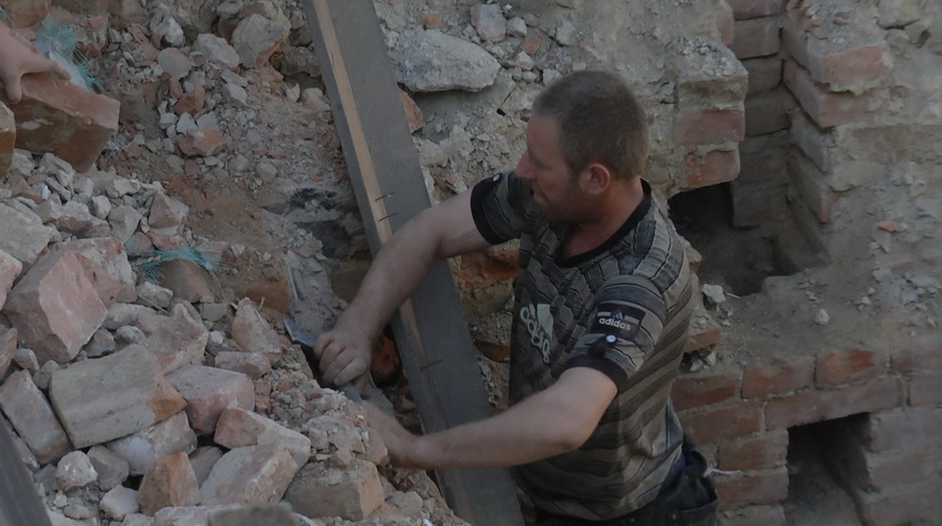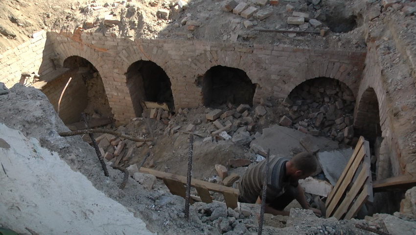 «Все засипано…», - зауважує робітник Микола. Він збирає з підвалу старовинну цеглу, очищає та складає окремо. Кожну деталь знахідки намагаються зберегти.