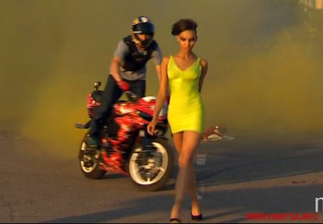 Нантіна ефектно показала себе з шаленими мотоциклістами, але допустила помилку. У жовто-блакитному диму вона швидко зняла спортивний комбінезон, але шолом поставила не в тому місці.