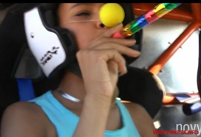 Під час екстремальної зйомки у автівці вінничанці дісталися кумедні реквізити – клоунський ніс і свисток. Проте отримала на шаленій швидкості світлина суддів не задовольнила. До того ж, конкурсантка вкотре влаштувала суперечку під час обговорення трьох випробувань, за що і поплатилася місцем серед найкрасивіший українок.