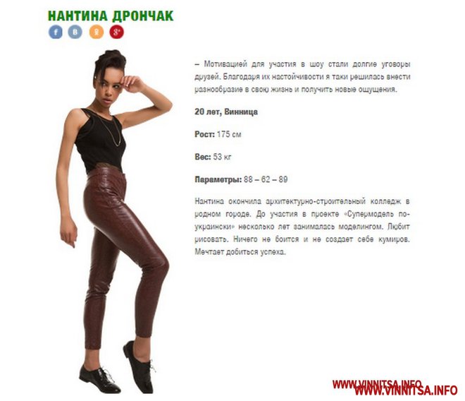 Екзотична вінничанка Нантіна Дрончак покинула шоу «Супермодель по-українськи». Аби залишитися у проекті, дівчатам довелося стати учасницями екстремального дефіле з роздяганням і фотозйомки на швидкості.