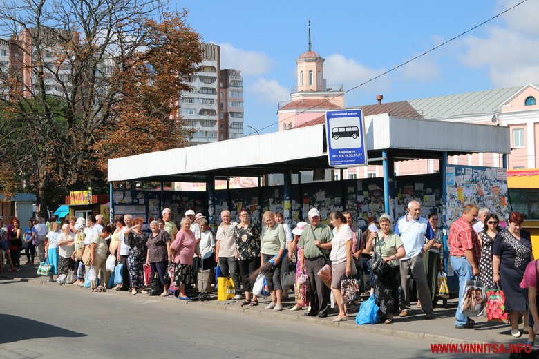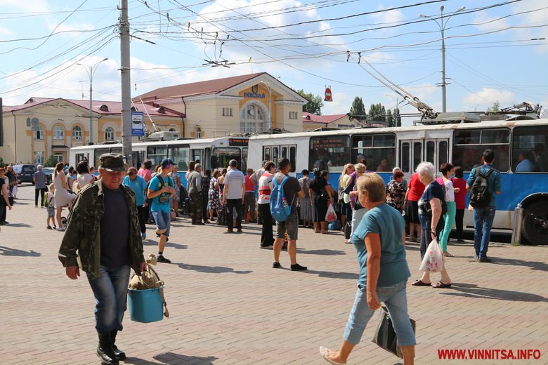 Біля залізничного вокзалу – кінцева зупинка громадського транспорту. У чергу на маршрут вишиковуються тролейбуси, автобуси і маршрутки. Чекають на них і пасажири. Мало хто покидає територію базар-вокзалу із пустими руками. Одні тримають валізи, інші заносять в салон кошики з купленою городиною, саджанцями або й коробки з курчатами.