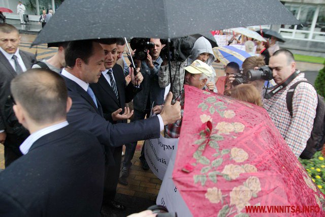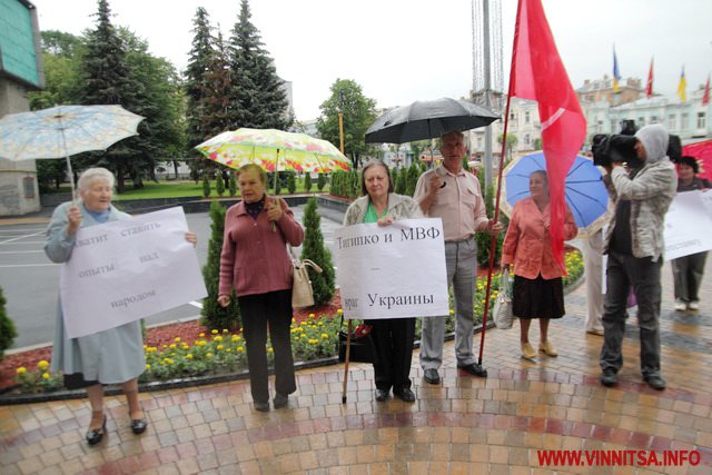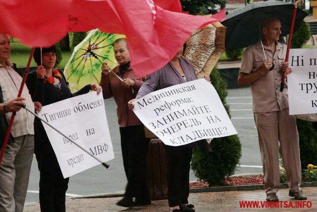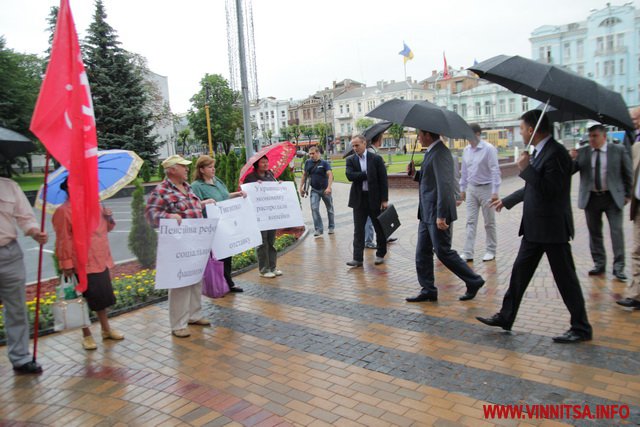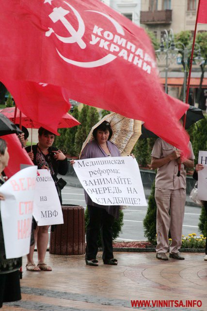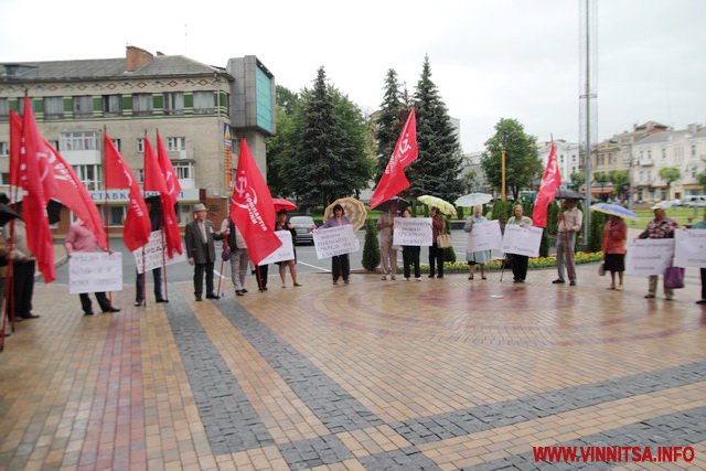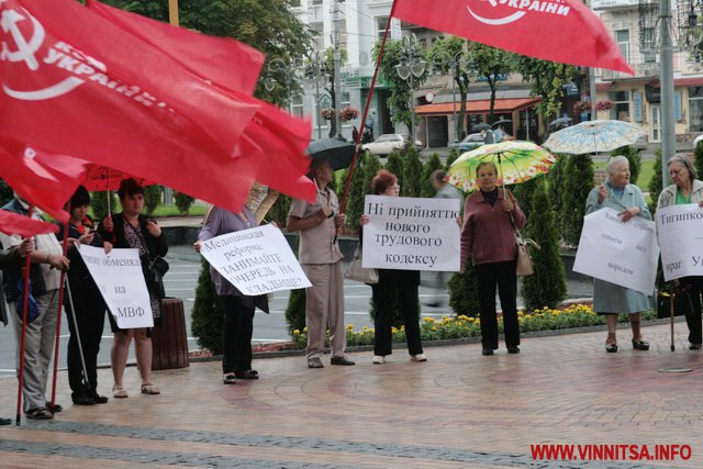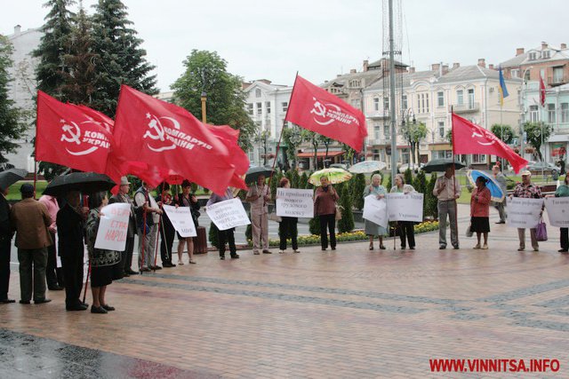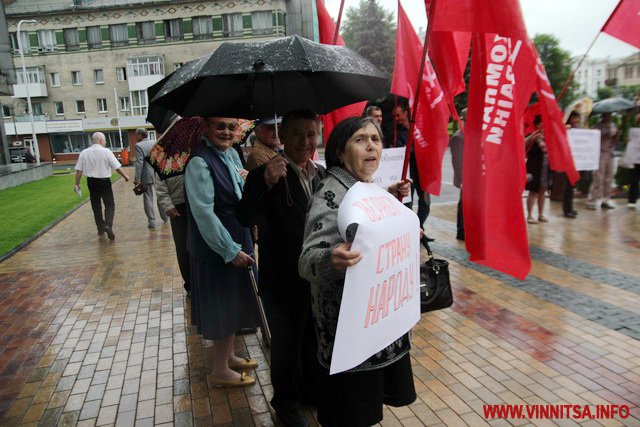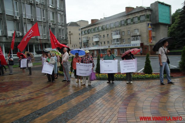 26 июня в Виннице возле помещения горисполкома перед приездом вице-премьер-министра - министра социальной политики Сергея Тигипка сторонники Коммунистической партии организовали митинг протеста.