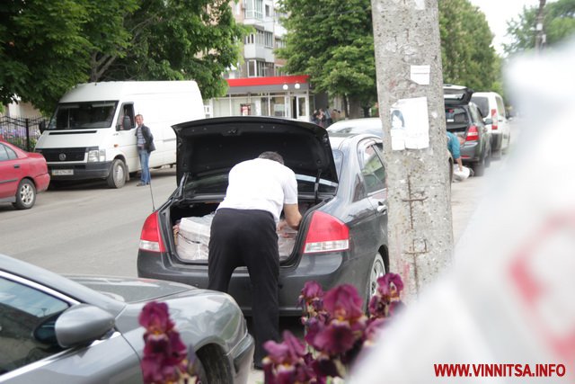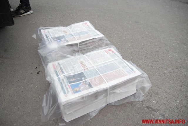 Журналісти ВИННИЦА.info теж встигли приїхати на місце подій по вулиці Некрасова, 37 й побачили там небагато не мало, а те, що кілька десятків людей нашвидкуруч завантажують в автомобілі тираж «Вечірніх Вістей», які до цієї приватної оселі завезли аж 7 вантажних палетах.