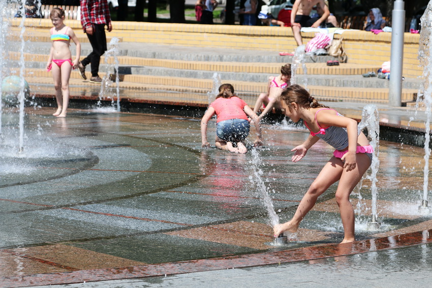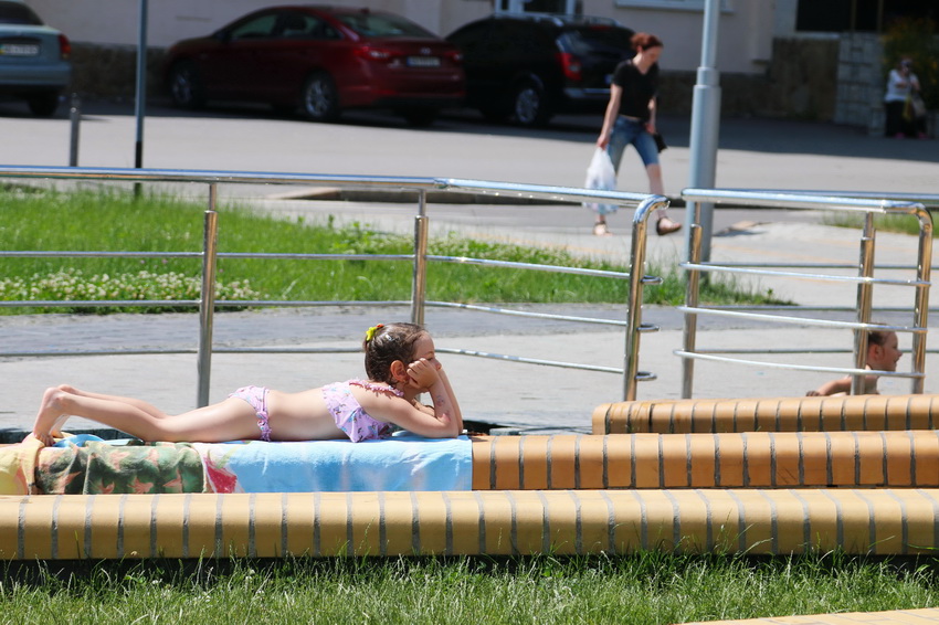 У спекотний день вінничани рятуються, як можуть: п’ють холодні напої, ховаючись в тіні, відпочивають на міських пляжах. Попри заборону купатися у річці Південний Буг та Вишенському озелі, малеча традиційно збирається біля фонтанів, що на Космонавтів.