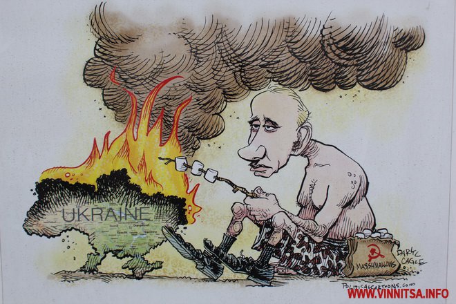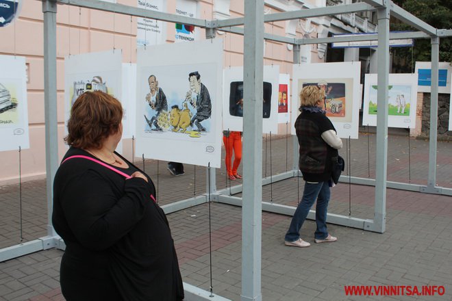 Виставка карикатур: ненажерливий Путін, гроші і політика - просто неба у Вінниці.