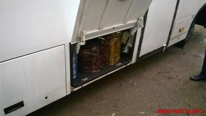 Оглянувши багажне відділення, правоохоронці виявили три сумки, а в них понад 100 літрів коняку та спирту, розлитого у півтора та дволітрові ємкості. Зі слів водія стало відомо, що невідома йому особа попросила доставити сумки з вантажем до Вінниці. Про те, що в них – він і не здогадувався.