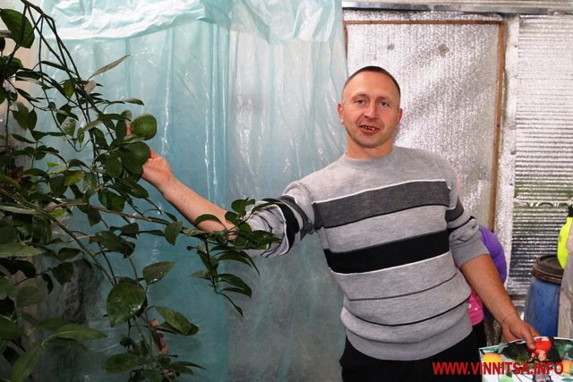 «Ідея вирощувати екзотичні рослини виникла багато років тому. Знайомий мене пригостив лимоном. Крупним. Ми покуштували. І я «загорівся», почав розводити, взяв черепочки, нащепив. Перше моє дерево, це Київське крупноплідне – плоди досягали до кілограма. В нас у кімнатних умовах вони виростали на 600-700 грам. Після того ми почали збирати колекцію. Зараз колекція нараховує більше 50 видів – лимони, мандарини, грейпфрути, памела. Щоб всі вони почали плодоносити було б добре. Найбільший вирощений фрукт – Київський крупноплідний. Плід лимону був вагою 1,250 кг. були мандарини по 350 – 400 грам.