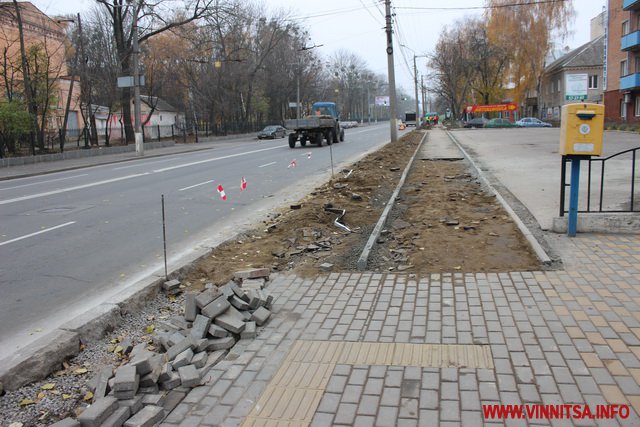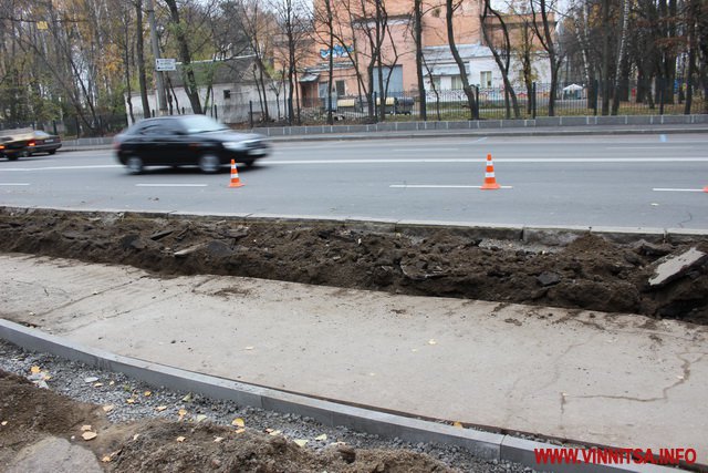 Станом на 8 листопада робітники зняли частину верхнього шару асфальтного покриття починаючи від будинку № 86 і до повороту на тролейбусне депо. На незначній території вже встановили нові бордюри та засипали щебнем.