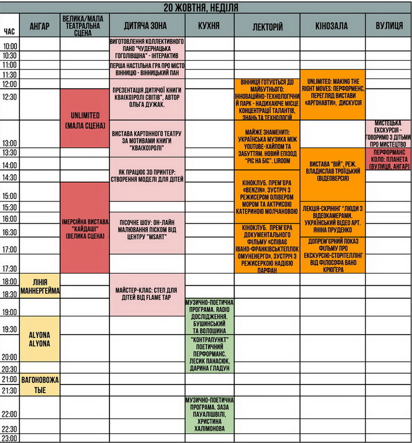 Родзинками театральної програми стануть вистави від німецького та швейцарського театру, українського незалежного театру. Спецподією на цьогорічному фестивалі буде опера-реквієм «IYOV» від режисера Влада Троїцького та за участі музично-театральної формації NOVA OPERA. Відзначимо, що у 2018 опера-реквієм «IYOV» увійшла до ТОП-10 опер світу.