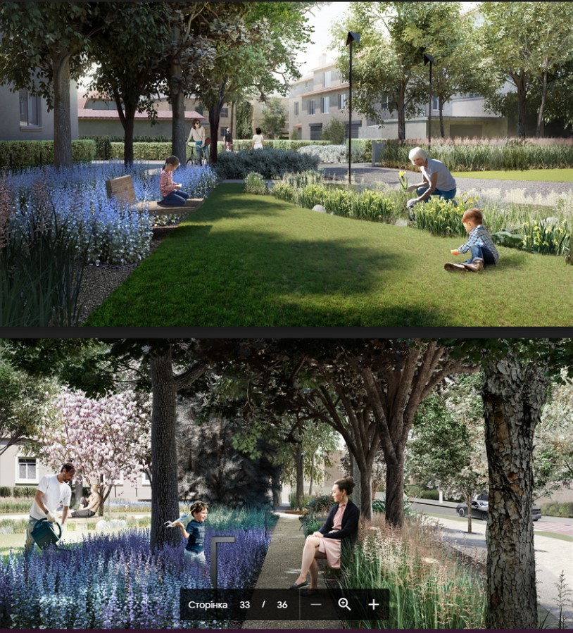 «Проект-переможець дуже добре враховує побажання місцевих мешканців – мати тихий мальовничий сквер біля вікон своїх будинків. На це, згідно з нашими опитуваннями, був великий запит. Це не має бути гамірний простір з великим скупченням людей, це більше схоже на місце для розмірковувань, для насолоди природою та свіжістю», — зауважує директорка комунального підприємства Інститут розвитку міст у Вінниці Аліна Дяченко.