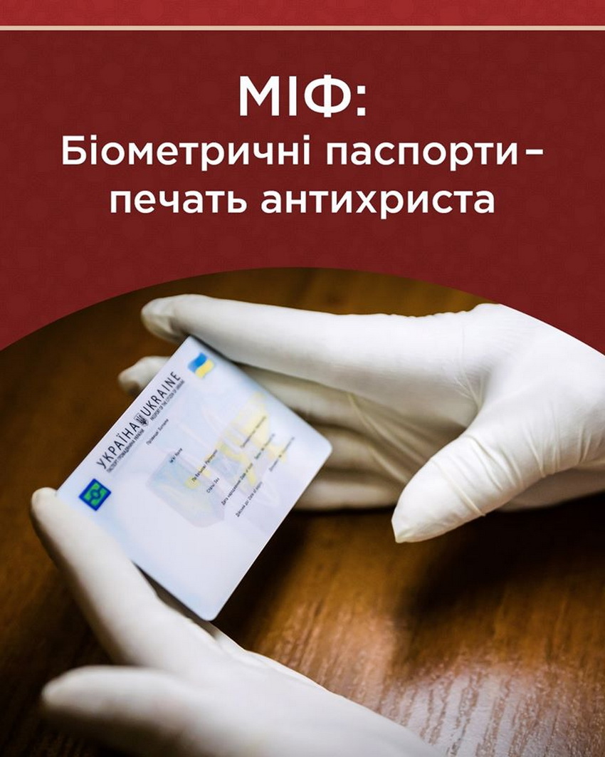 «Чим тільки не залякують людей – втратою приватності, «відреченням від Господа», «печаткою антихриста». І все це – начебто від імені Церкви. Втім, насправді Православна Церква України не засуджує використання вірянами біометричних паспортів, адже вони є лише одним із проявів наукового і технологічного прогресу. Жодного релігійного підґрунтя у біометричного паспорту немає», - зазначено в дописі на сторінці.