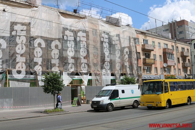 У Вінниці триває реконструкція фасаду триповерхового житлового будинку за адресою Соборна, 22. Наразі частину приміщення обнесли обриштовками. Варто зазначити, що «реанімують» будинок лише зовні.Відповідне рішення затвердили на виконкомі Вінницької міськради.