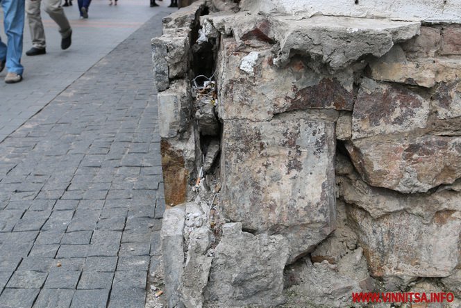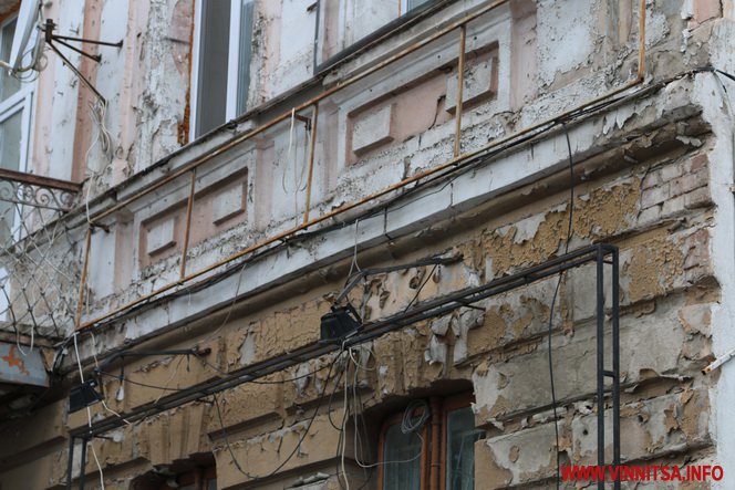 Окрім того, вже близько тижня комунальники приводять до ладу фасад Вінницької облради: зашпакльовують тріщини і фарбують.