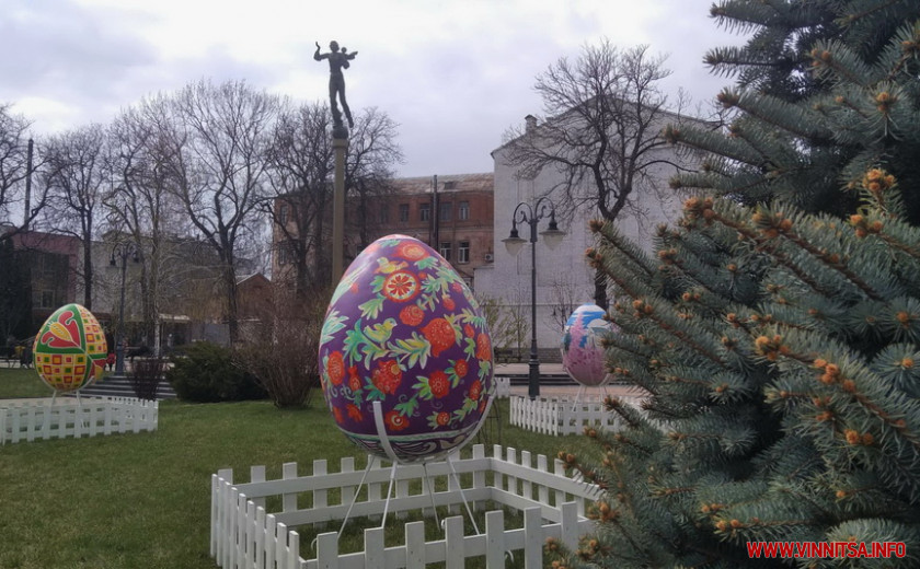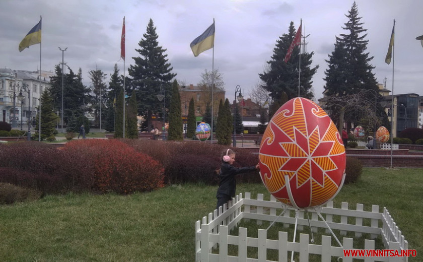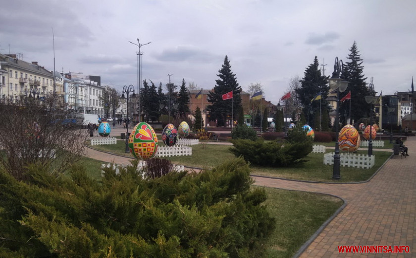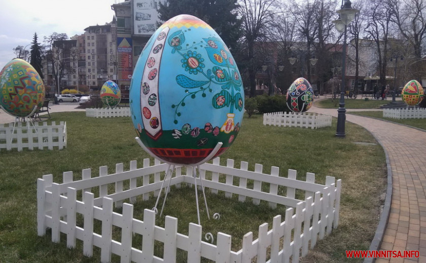 Від 20 квітня на центральній вулиці Вінниці почали встановлювати писанки-велетні. Останні роки – так прикрашають наше місто до Великодня, аби надати населеному пункту святкової атмосфери. Сфотографуватися біля них можуть усі охочі. Аби експонати не пошкодили, кожен огородили декоративним парканом. Минулого року, два десятки гігантських писанки встановили до свята Чистий четвер.