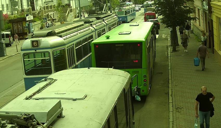 08:51 год - затор на центральному мосту в обох напрямках руху. Трамваї зупинились у напрямку до проспекту Коцюбинського.