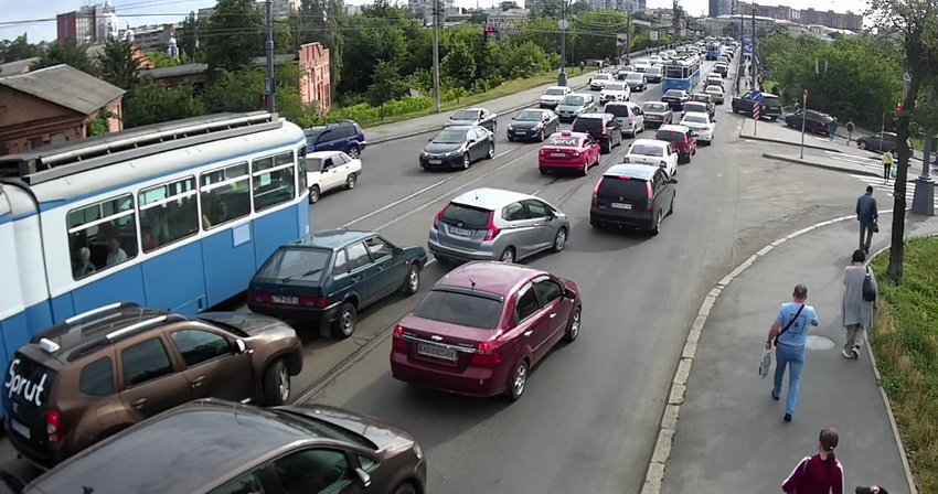 08:53 год - затор на вулиці Київській перед перехрестям з Брацлавською та Коцюбинського.