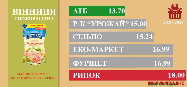 AТБ, пр. Юності, 51, ЕКО-маркет пр. Юності, 18, Сільпо, вул. Келецька, 105, Фуршет, вул. Е. Пікуса, 1-а , Ринок «Урожай», вул. Пирогова, 50 а, Ринок, вул. Некрасова, 4