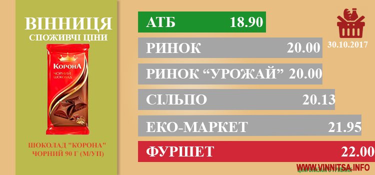 АТБ, пр. Юності, 51, ЕКО-маркет пр. Юності, 18, Сільпо, вул. Келецька, 105, Фуршет, вул. Е. Пікуса, 1-а , Ринок «Урожай», вул. Пирогова, 50 а, Ринок, вул. Некрасова, 48.
