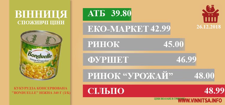AТБ, пр. Юності, 51, ЕКО-маркет пр. Юності, 18, Сільпо, вул. Келецька, 105, Фуршет, вул. Е. Пікуса, 1-а , Ринок «Урожай», вул. Пирогова, 50 а, Ринок, вул. Некрасова, 4