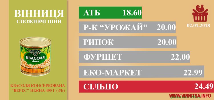 Ціни в Вінниці за 03.01.2018