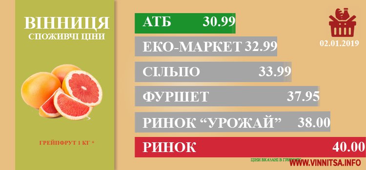 AТБ, пр. Юності, 51, ЕКО-маркет пр. Юності, 18, Сільпо, вул. Келецька, 105, Фуршет, вул. Е. Пікуса, 1-а , Ринок «Урожай», вул. Пирогова, 50 а, Ринок, вул. Некрасова, 4