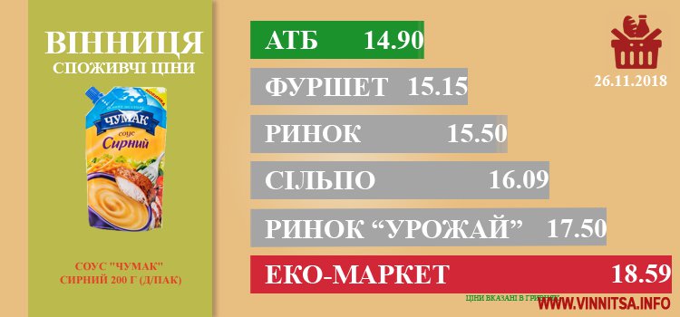 AТБ, пр. Юності, 51, ЕКО-маркет пр. Юності, 18, Сільпо, вул. Келецька, 105, Фуршет, вул. Е. Пікуса, 1-а , Ринок «Урожай», вул. Пирогова, 50 а, Ринок, вул. Некрасова, 4
