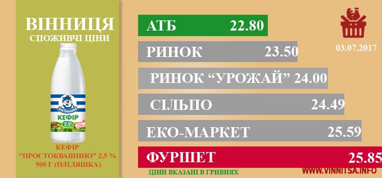 АТБ, пр. Юності, 51, ЕКО-маркет пр. Юності, 18, Сільпо, вул. Келецька, 105, Фуршет, Хмельницьке шосе, 145-б, Ринок «Урожай», вул. Пирогова, 50 а, Ринок, вул. Некрасова, 48.