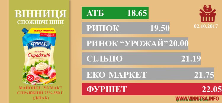 АТБ, пр. Юності, 51, ЕКО-маркет пр. Юності, 18, Сільпо, вул. Келецька, 105, Фуршет, вул. Е. Пікуса, 1-а , Ринок «Урожай», вул. Пирогова, 50 а, Ринок, вул. Некрасова, 48.