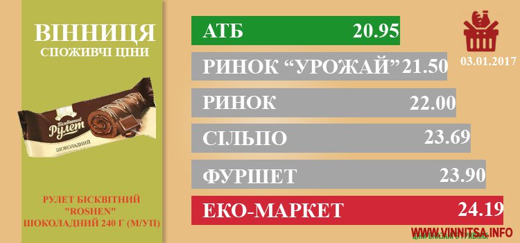 АТБ, пр. Юності, 51, ЕКО-маркет пр. Юності, 18, Сільпо, вул. Келецька, 105, Фуршет, Хмельницьке шосе, 145-б, Ринок «Урожай», вул. Пирогова, 50 а, Ринок, вул. Некрасова, 48.