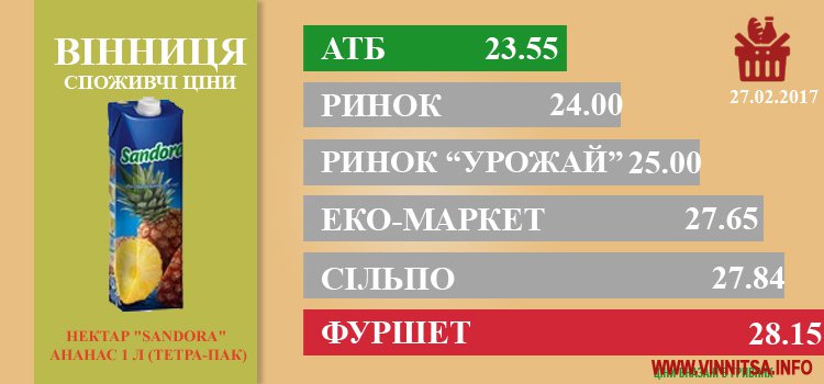 АТБ, пр. Юності, 51, ЕКО-маркет пр. Юності, 18, Сільпо, вул. Келецька, 105, Фуршет, Хмельницьке шосе, 145-б, Ринок «Урожай», вул. Пирогова, 50 а, Ринок, вул. Некрасова, 48.